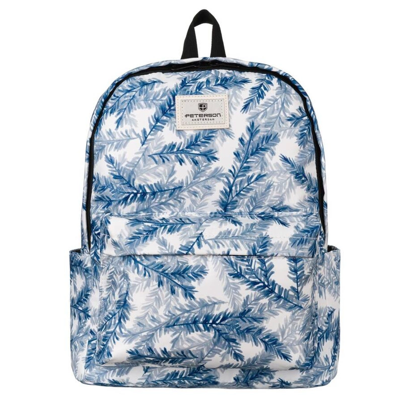 - Plecak szkolny wykonany z poliestru w roślinny wzór. Plecak wyposażony w regulowane szelki. Jednokomorowy z dodatkowymi kieszeniami, ułatwiającymi organizację przedmiotów (w tym jedna mieszcząca np. tablet).
