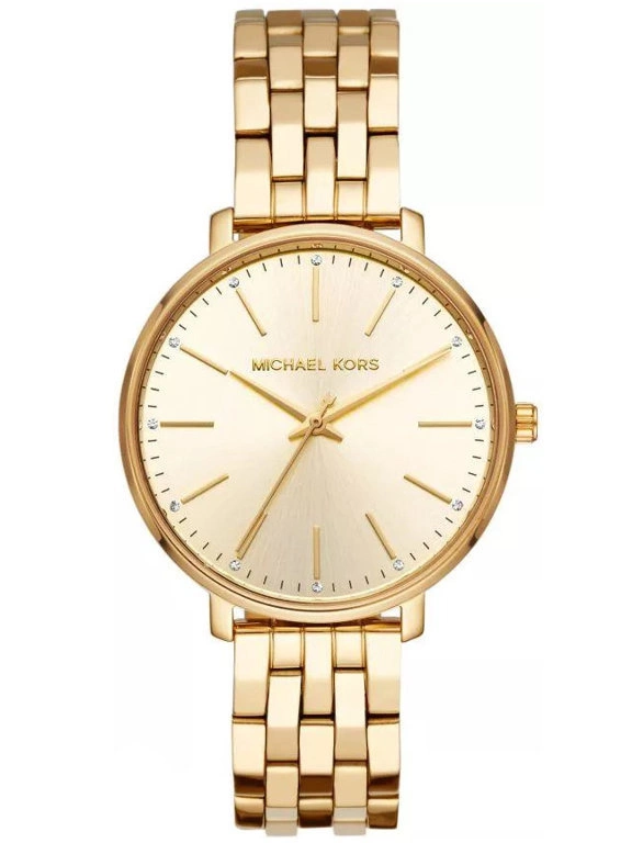 Zegarek Michael Kors MK3898 Pyper to szykowny, elegancki czasomierz oparty o klasyczny design. Złota koperta oraz bransoleta zostały wykonane ze stali szlachetnej co gwarantuje wieloletnią odporność na zniszczenie. Model posiada dokładny mechanizm kwarcowy zasilany baterią. Całość przykrywa odporne na zarysowania szkło mineralne.