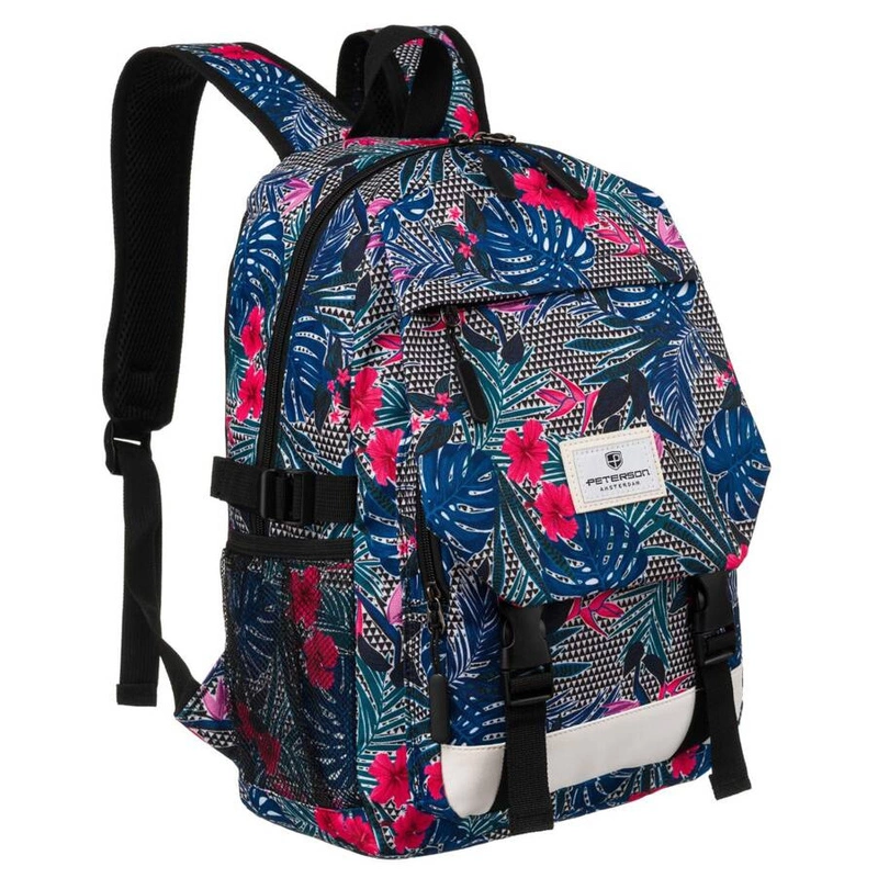Sportowy plecak szkolny w roślinny wzór z kieszenią na froncie - Peterson