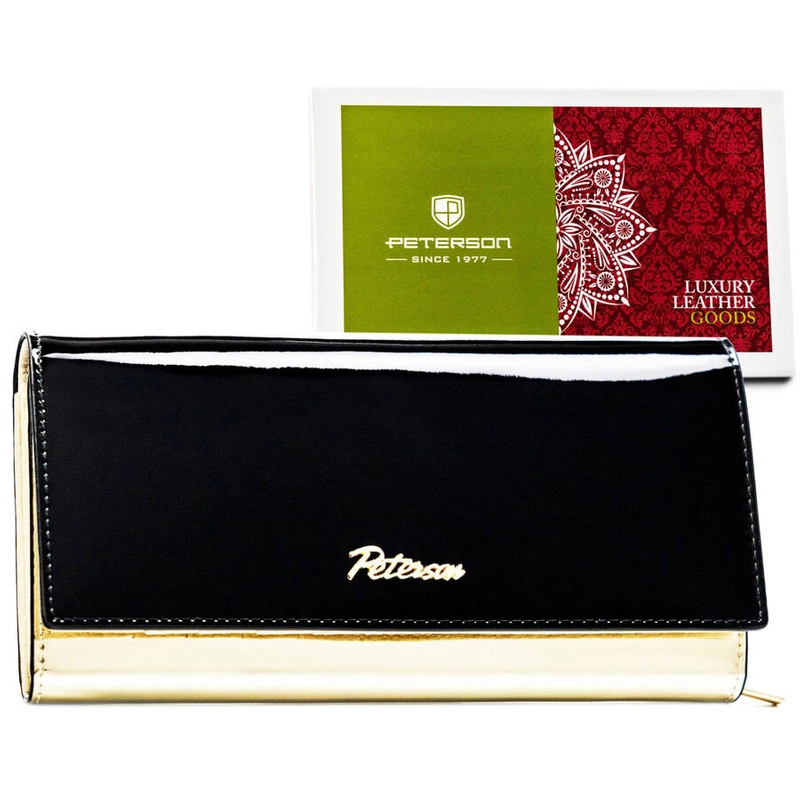 Duży, czarno-złoty portfel damski ze skóry naturalnej zamykany na zatrzask - Peterson