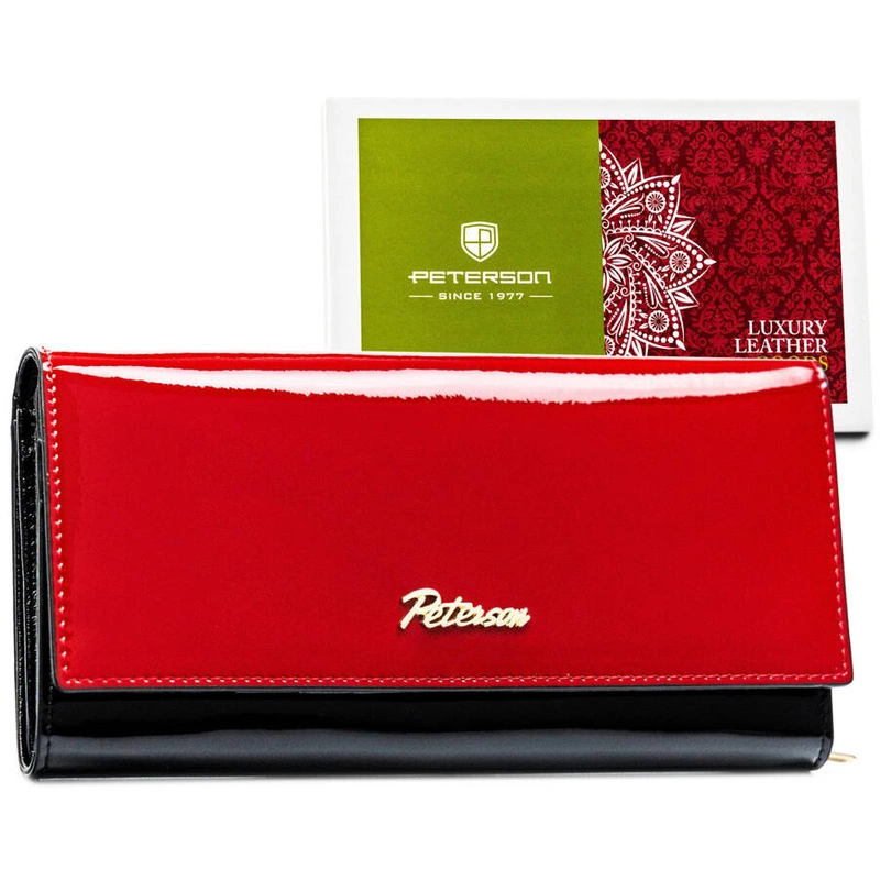 Portfel damski w czerwono-czarnym kolorze z kieszenią wewnętrzną na suwak - Peterson