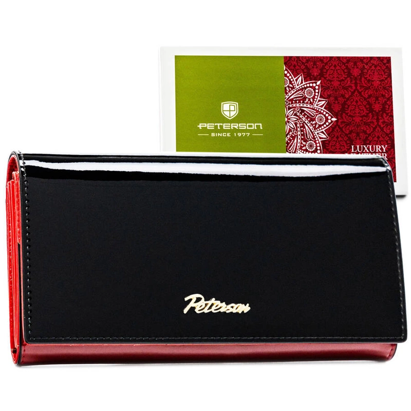 Skórzany portfel damski w kolorze czarno-czerwonym z zewnętrzną kieszenią - Peterson