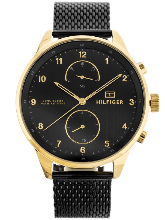 Elegancki i nowoczesny zegarek Tommy Hilfiger 1791580 łączy klasyczny styl z funkcjonalnością. Koperta o średnicy 44 mm wykonana jest ze stali nierdzewnej w złotym tonie, a czarna tarcza i meshowa bransoleta dodają mu surowego charakteru. Zegarek napędza precyzyjny mechanizm kwarcowy, posiada wskazania daty i dnia tygodnia oraz wodoodporność do 5 ATM – idealny do codziennego noszenia, a jednocześnie wyrafinowany dodatek biznesowy.
