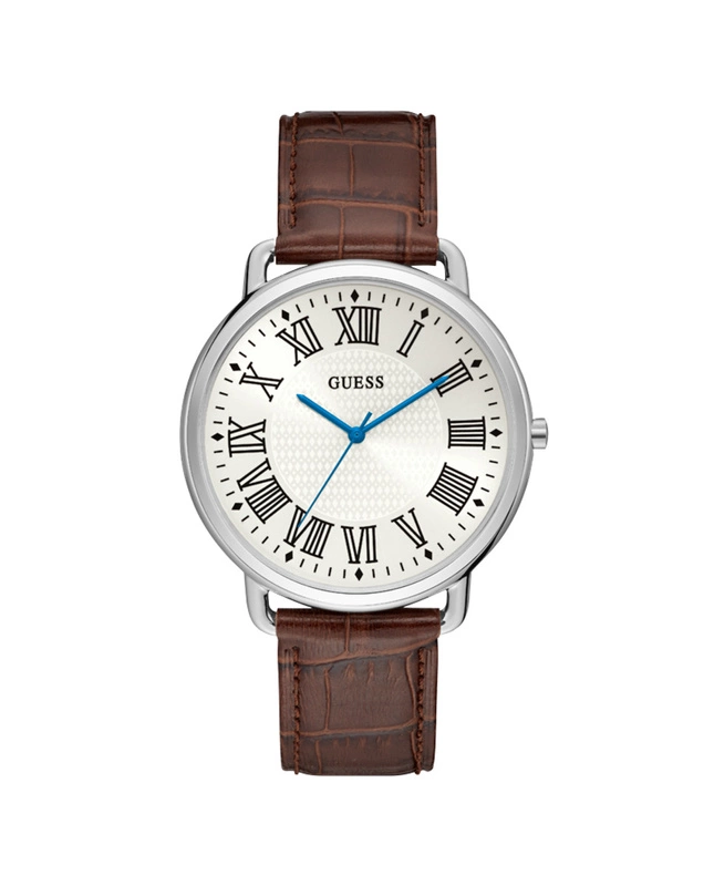 Zegarek GUESS Męski W1164G1 (44MM). Typ mechanizmu: Kwarcowy. Wyświetlacz: Analogowy. Materiał koperty: Stal Szlachetna. Kolor koperty: Stalowy. Materiał bransoletki: Skóra naturalna. Kolor bransoletki: Brązowy. Kolor wskazówek: Biały. Typ szkiełka: Mineralne. Rodzaj zapięcia: . Średnica tarczy: 44MM. Wodoszczelność: 10ATM