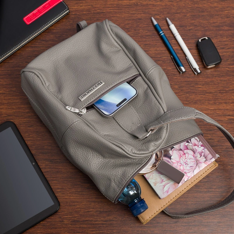 Jasnoszary Plecak damski skórzany torebka 2w1 Beltimore 019