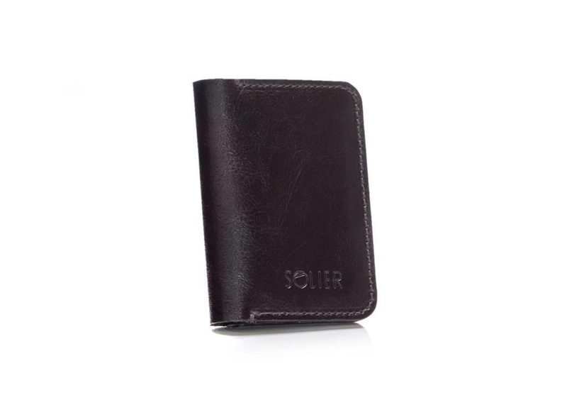Cienki skórzany męski portfel z bilonówką SOLIER SW16 SLIM CIEMNY BRĄZ