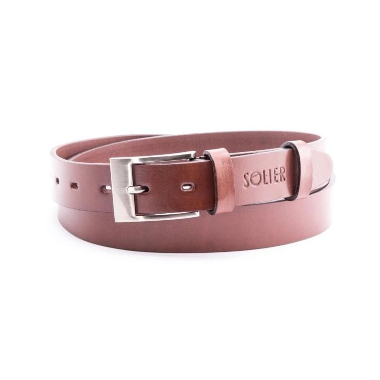 Elegancki skórzany pasek męski SOLIER SB10 Ciemny brązowy
