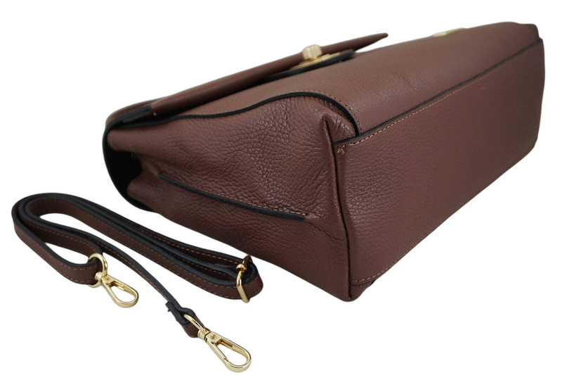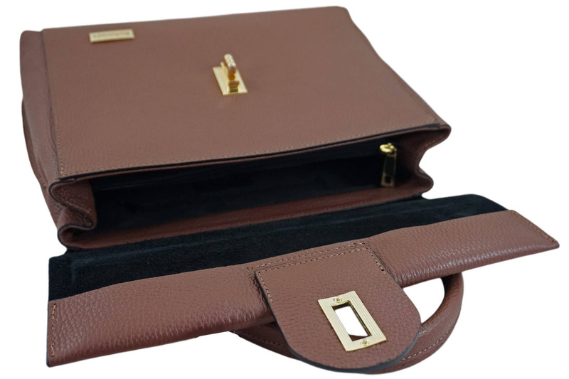 Skórzana torebka kuferek do ręki w kolorze brązowym została wykonana ze skóry naturalnej licowej. W najnowszej kolekcji sklepu barberinis.pl znajdziecie Państwo szeroką ofertę wysokiej jakości galanterii skórzanej, która uzupełni Wasze stylizacje zarówno codzienne swobodne, jak również na spotkania biznesowe lub krótkie wyjazdy. Posiadamy szeroki wybór produktów z najwyższej jakości skóry licowej lub zamszowej, z subtelnymi dodatkami, w szerokiej palecie kolorystycznej. Oferowana skórzana torebka kuferek do ręki jest zaprojektowana według najnowszych trendów, z dbałością o szczegóły. To propozycja dla Pań ceniących gustowne dodatki codziennej garderoby, zwracających uwagę na jakość i estetykę wykonania produktu ze skóry naturalnej. Zapoznaj się z wyjątkową kolekcją skórzanych torebek, aktówek lub wygodnych plecaków. Zapisz się do newslettera i odbierz rabat na zakupy. Poinformujemy Cię również o najnowszych promocjach, nowej kolekcji lub uzupełnieniu interesujących Cię torebek lub portfeli.