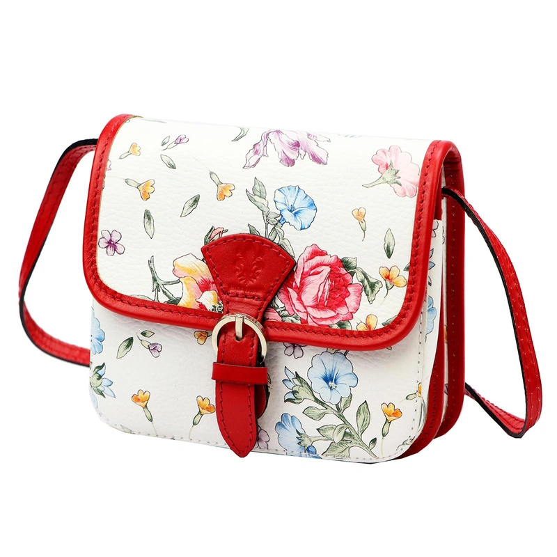Skórzana damska listonoszka torebka przez ramię w kwiaty Gregorio