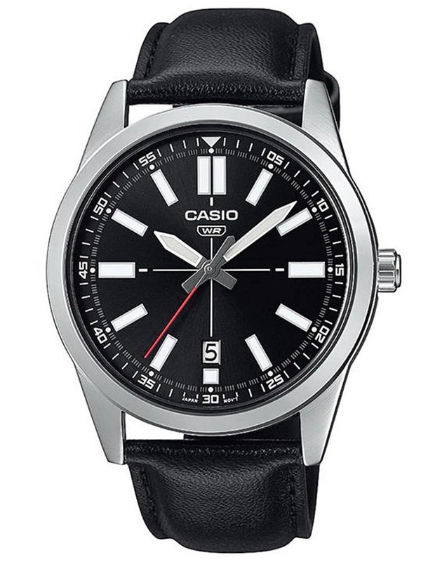 Zegarek męski Casio MTP-VD02L-1EUDF to elegancki model, który łączy klasyczny design z funkcjonalnością. Posiada czarny skórzany pasek, który doskonale komponuje się z czarną kopertą, nadając zegarkowi stonowanego, a zarazem nowoczesnego charakteru. Czarna tarcza z subtelnymi indeksami zapewnia świetną czytelność, a wbudowany datownik ułatwia śledzenie dnia miesiąca. Zegarek jest napędzany precyzyjnym mechanizmem kwarcowym, który gwarantuje dokładność pomiaru czasu. Chroniony szkłem mineralnym, które wykazuje odporność na zarysowania, zegarek zachowa swój elegancki wygląd przez długi czas. To doskonały wybór dla mężczyzn szukających funkcjonalnego, ale zarazem stylowego dodatku do codziennych stylizacji.