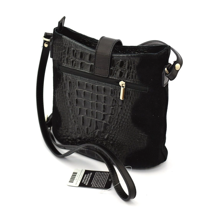 Proponujemy śliczną, włoską listonoszkę skórzaną, perfekcyjnie uszytą i wykończoną z dopieszczeniem najdrobniejszych detali. Połączenie wysokiej jakości skóry naturalnej z motywem skóry aligatora oraz zamszu, tworzy ciekawą kompozycję i nadaje torebce nutkę drapieżnej elegancji. Posiada elementy metalowe w kolorze złota.