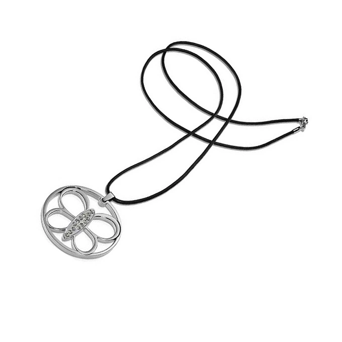 PENDANT WATXANDCO Damski JWA2110 (60 ). Materiał: Stalowy. Kolor: Srebrny. Wymiary: 60.. . Butterfly stones i Czarny Skóra naturalna cord. Hanging length: 5cm