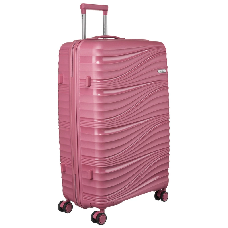 - Walizka w kolorze różowym, o średnim rozmiarze, idealna na krótkie i dłuższe podróże. Wyposażona w zamek TSA, lekką konstrukcję i cztery obrotowe kółka zapewniające komfortowy transport.
