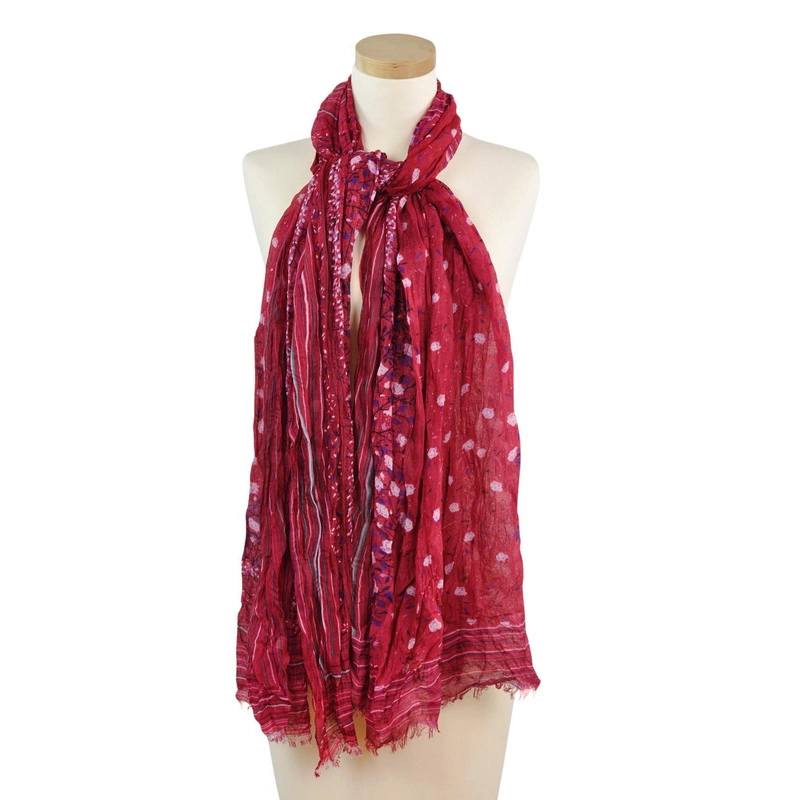Szal nadaje się do ułożenia nie tylko na szyi, ale i w formie turbanu na głowę lub jako pareo.
