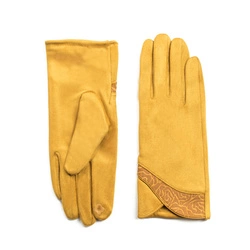Eleganckie rękawiczki damskie zdobione subtelnym kwiatowym motywem.