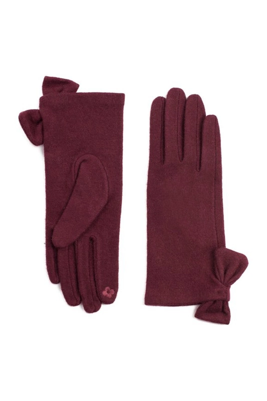 Wełniane rękawiczki ozdobione niewielką aplikacją.