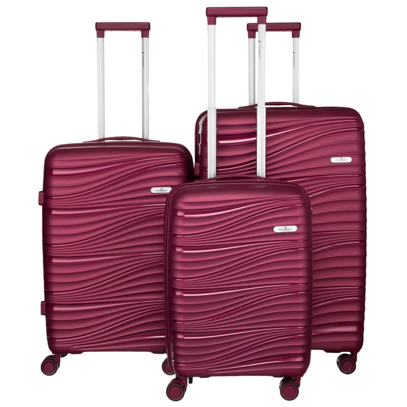 - Zestaw trzech walizek Peterson w bordowym kolorze, idealny na każdą okazję. Przestronne wnętrze z przegrodami zmieści odzież, obuwie i kosmetyki. Twarda konstrukcja z polipropylenu, zamek TSA i kółka 360° ułatwiają bezpieczne podróżowanie.