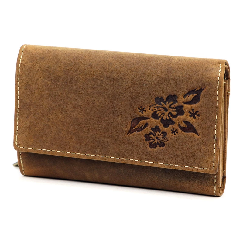 Portmonetka zachwyca swoim kwiatowym motywem, który dodaje jej delikatności i unikalnego charakteru. Złote okucia idealnie harmonizują z naturalną skórą, nadając całości luksusowego wyglądu. Dzięki temu model doskonale sprawdzi się zarówno na co dzień, jak i podczas wyjątkowych okazji.