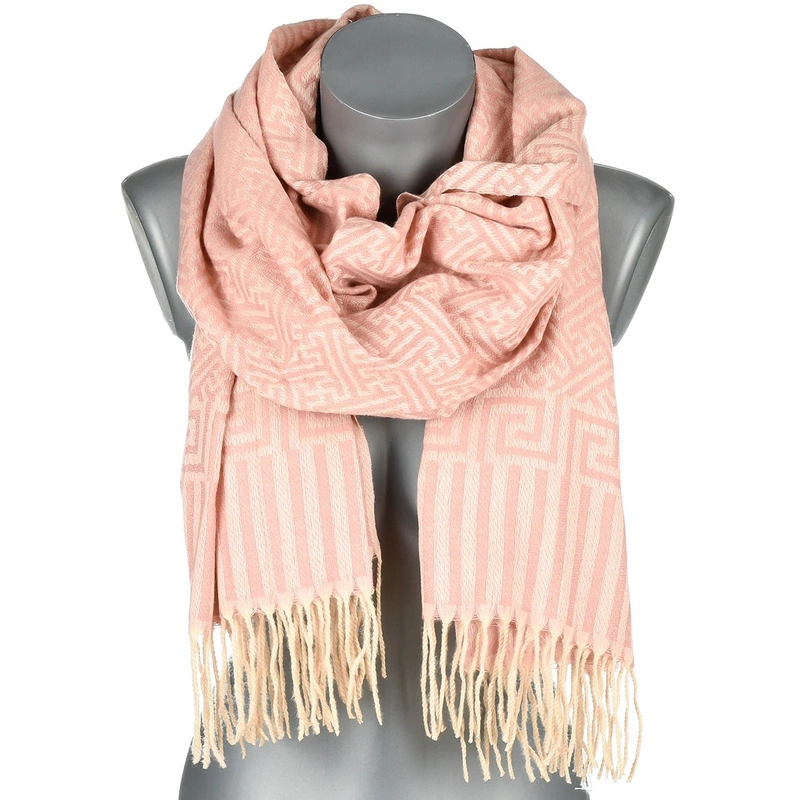Modny, duży, przyjemny w dotyku szalik damski w modnym wzorze, zakończony frędzlami