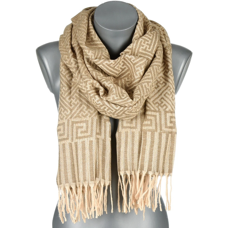 Modny, duży, przyjemny w dotyku szalik damski w modnym wzorze, zakończony frędzlami