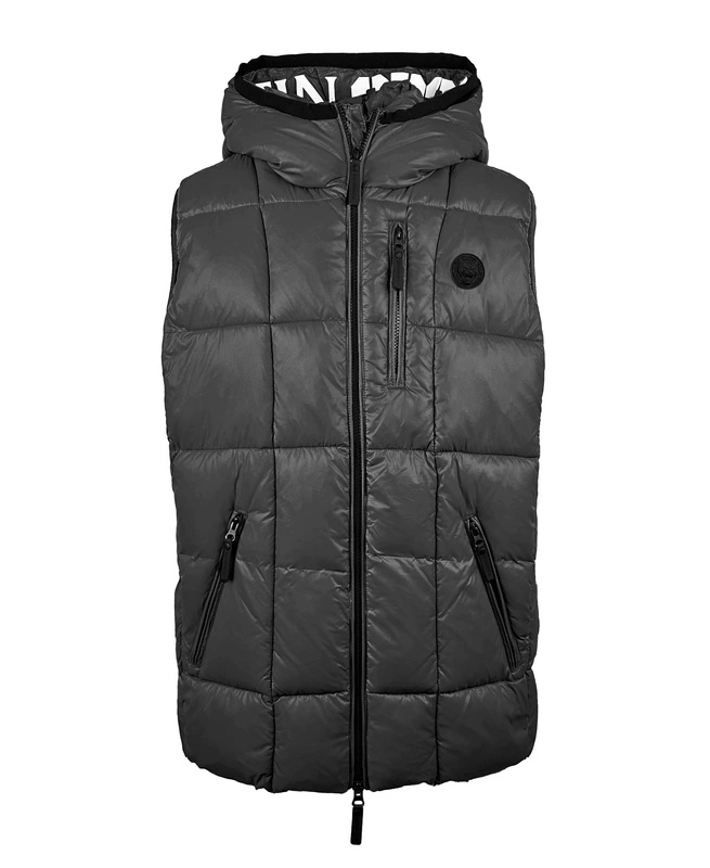 Bezrękawnik wyposażony jest w regulowany kaptur, który zapewnia dodatkową ochronę w zmiennych warunkach atmosferycznych. Zamek błyskawiczny umożliwia szybkie założenie, a trzy zewnętrzne kieszenie pozwalają na bezpieczne przechowywanie najpotrzebniejszych rzeczy. Kamizelka jest nie tylko funkcjonalna, ale także lekka i wygodna w noszeniu, co sprawia, że jest doskonałym rozwiązaniem na chłodniejsze dni.