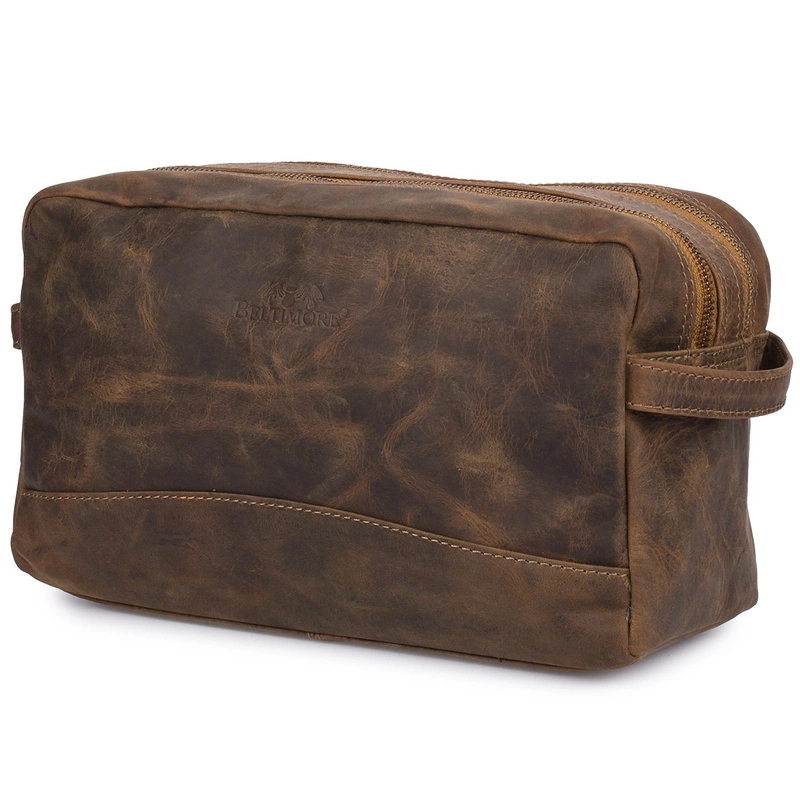 ✅ Elegancka, świetnie zorganizowana kosmetyczka uniseks marki Beltimore wykonana z wysokiej jakości naturalnej skóry nubuk