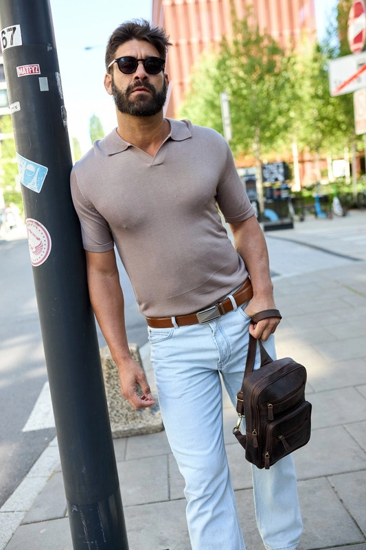 Elegancki i kompaktowy plecak-saszetka typu crossbody, wykonany z najwyższą starannością z naturalnej skóry bydlęcej nubuk. Model N25brown zachwyca wszechstronnością i ponadczasowym stylem, łącząc klasyczny design z wyjątkową funkcjonalnością.