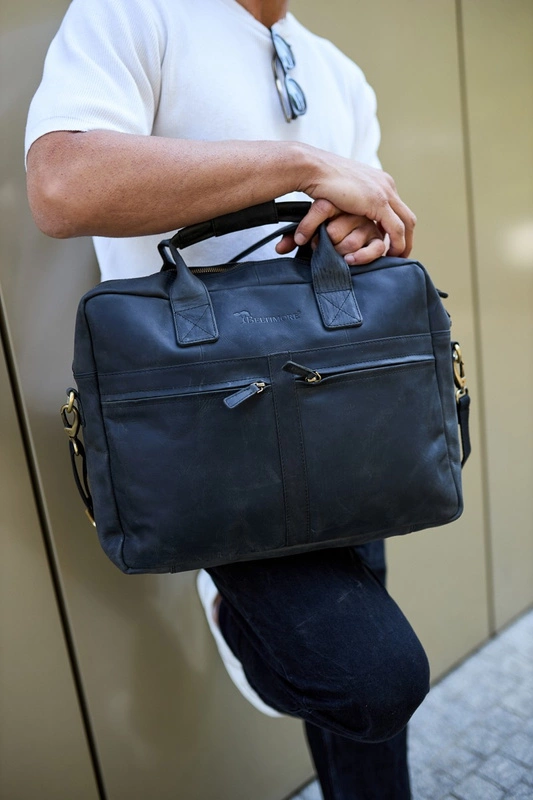 ✍️ Torba na laptopa Beltimore ma parę solidnych, dobrze leżących w dłoni uchwytów ze skóry do noszenia w ręce, o długości ok. 40 cm, dodatkowo jest uprząż łącząca dwa ucha w jedno