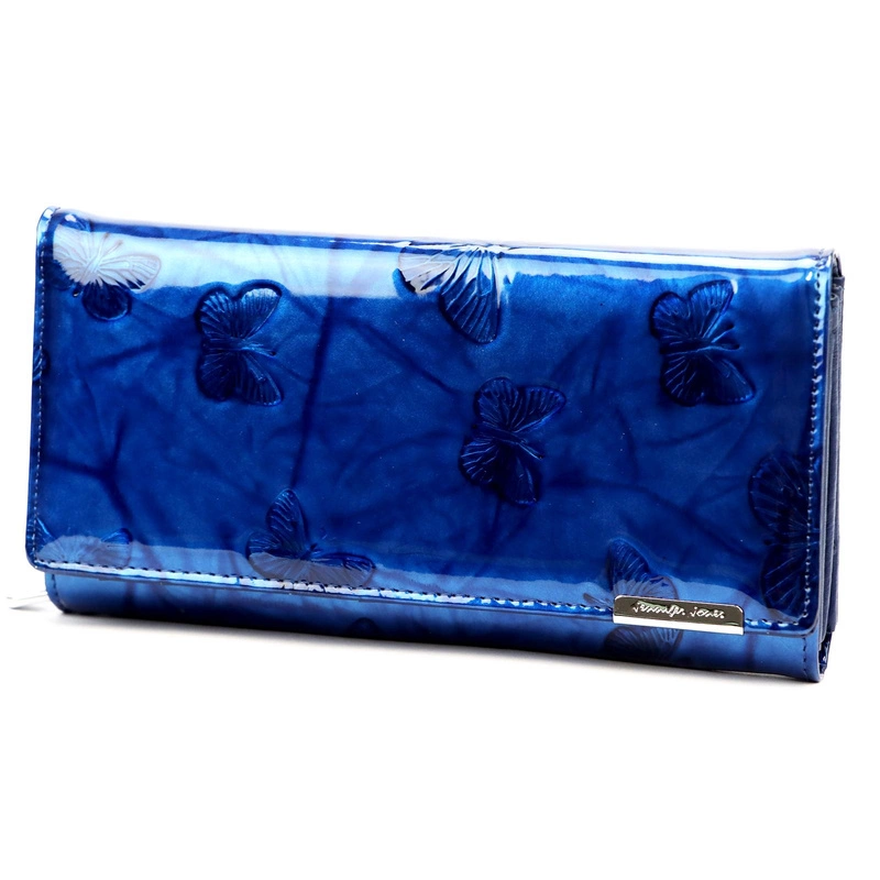 • Jennifer Jones prezentuje wyjątkową, dużą portmonetkę, która łączy klasyczny design z wyrafinowanymi detalami. Wykonana z lakierowanej skóry naturalnej o motywie motyli, wyróżnia się oryginalnym wyglądem, który zachwyca elegancją i kobiecym urokiem.
