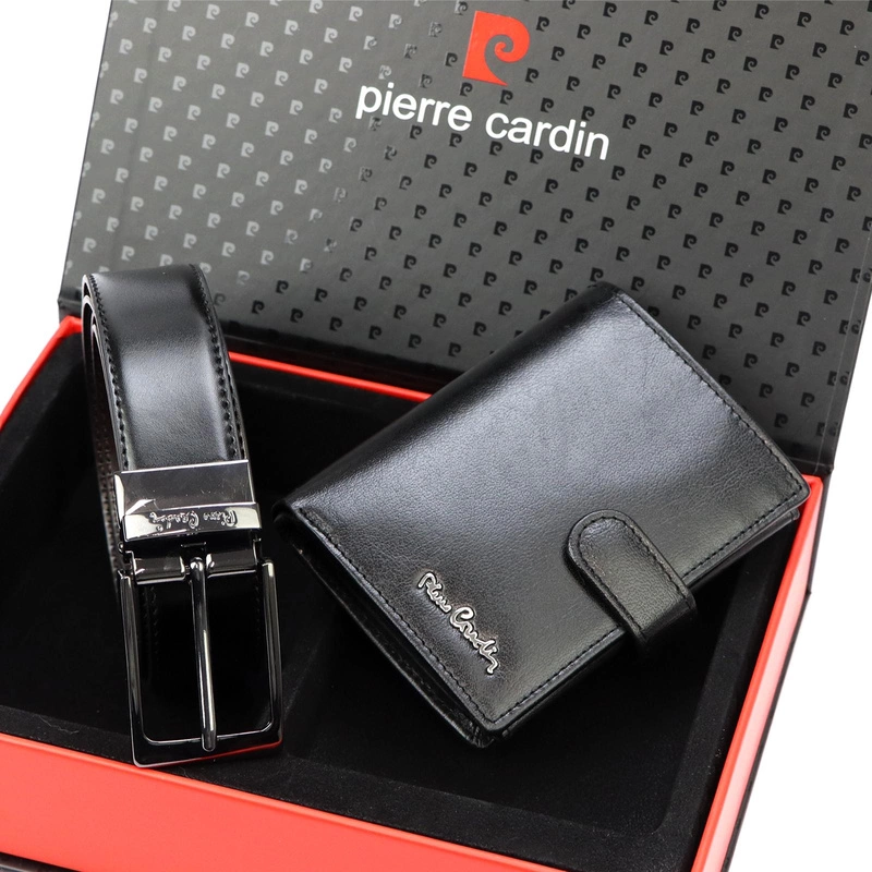 Męski zestaw skórzany rozbudowany portfel i pasek do spodni Pierre Cardin