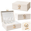 - Eleganckie pudełko na biżuterię i zegarki zamykane zatrzaskiem i kluczykiem. Dwupoziomowe, wykończone welurową tkaniną. Stylowe wykończenie we wzór skóry aligatora oraz złote okucia nadają szkatułce charakteru i modnego sznytu.