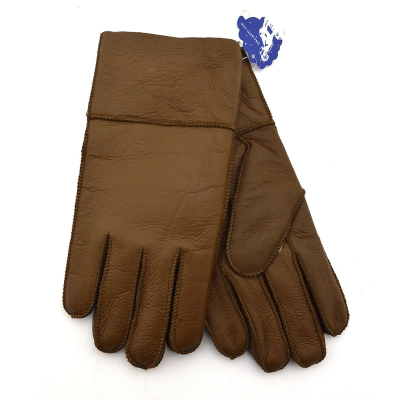 mn1g brązowy Rękawiczki skórzane pięciopalczaste kożuch
