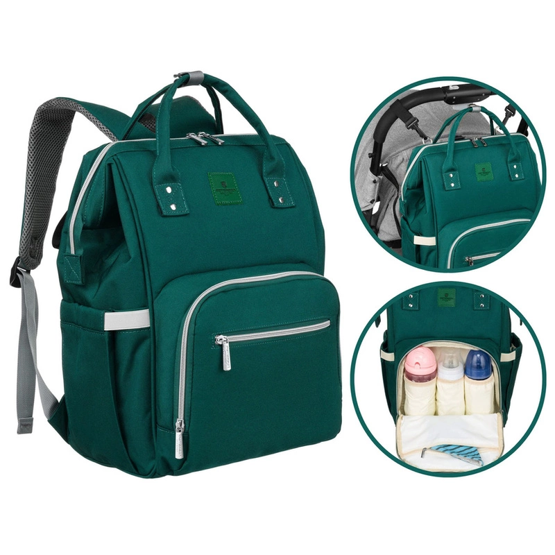 Wielofunkcyjny plecak dla mam z kieszeniami na suwak w zielonym kolorze - Peterson