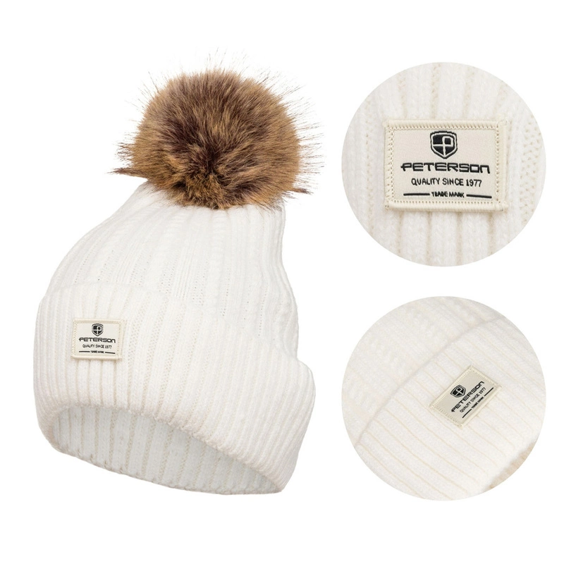 - Modna damska czapka Peterson w naturalnych barwach, idealna na zimę. Wykonana z miękkiej dzianiny, zapewnia ciepło i komfort. Ozdobiona modnym futerkowym pomponem, dodaje uroku każdej stylizacji. Uniwersalny rozmiar dopasowuje się do kształtu głowy.