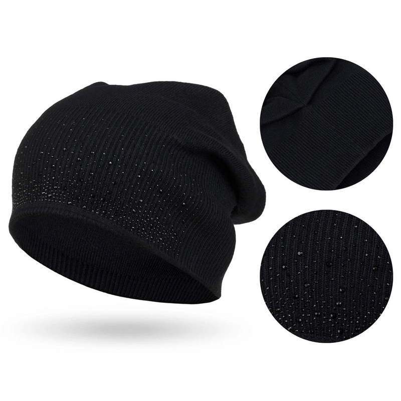 Czapka PETERSON® to doskonała czapka dla kobiet, które cenią sobie zarówno wygodę, jak i stylowy wygląd, niezależnie od okazji. Wykonana z miękkiego, czarnego materiału o prążkowanym brzegu, ozdobiona została efektownym gradientowym zdobieniem z błyszczących czarnych kryształków różnej wielkości, które nadają jej wyjątkowego charakteru.