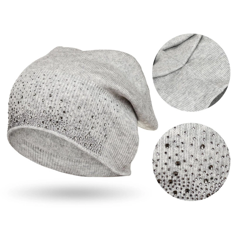Ciepła czapka beanie z błyszczącymi kryształkami - Peterson