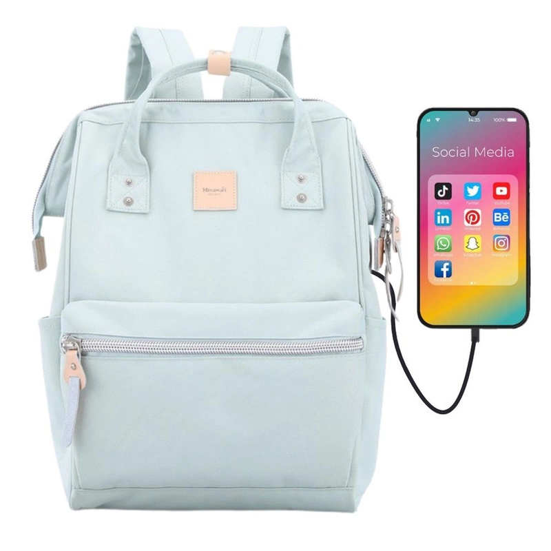 - Funkcjonalny plecak Himawari w modnym miętowym kolorze. Wodoodporna tkanina, kieszeń na laptopa, port USB. Idealny do szkoły i na miasto. Pojemny, z praktycznym wnętrzem i wieloma kieszeniami.