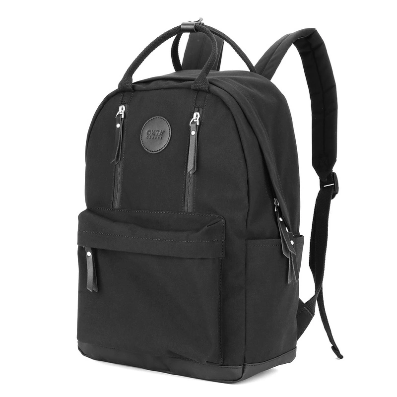 - Czarny plecak Himawari o minimalistycznym designie, wykonany z trwałego materiału, z przestronną komorą na laptopa. Idealny do szkoły, pracy i codziennych aktywności. Wodoodporny, z wygodnymi regulowanymi szelkami i dodatkowymi kieszeniami na akcesoria.