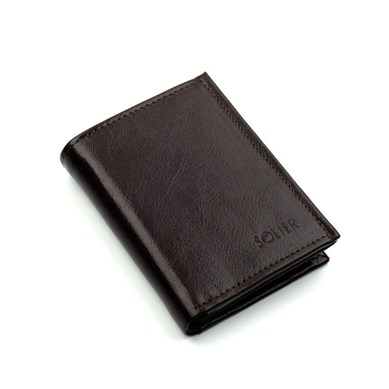 Elegancki brązowy skórzany męski portfel SOLIER SW04B