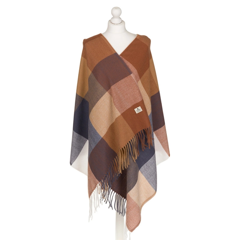 • Duży szalik damski Peterson w odcieniach rudości i beżu z modnym wzorem w kratę. Duży, miękki i ciepły, idealny na jesienne dni. Wykonany z wysokiej jakości materiałów, zakończony eleganckimi frędzlami. Świetny pomysł na prezent.