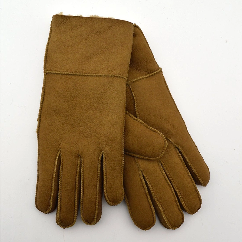 mn1g jasny brąz Rękawiczki skórzane pięciopalczaste kożuch