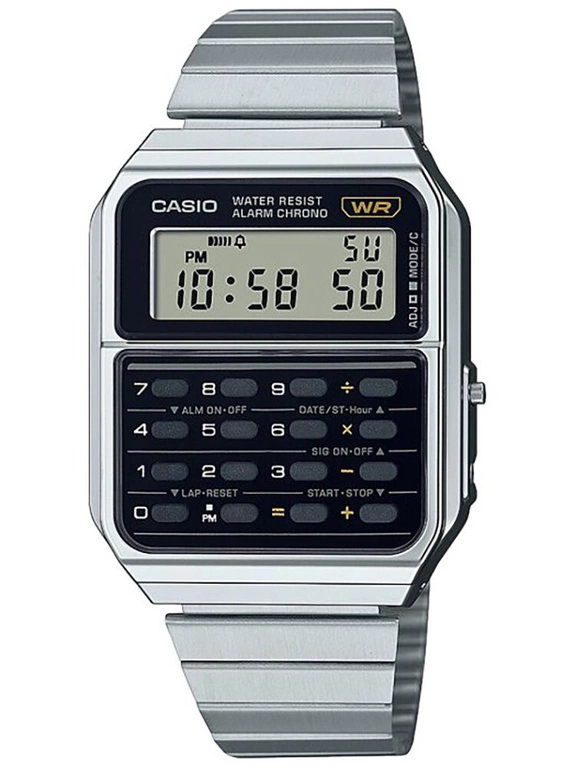 Zegarek Casio CA-500WE-1A to wyjątkowy wybór dla osób, które cenią sobie styl retro połączony z funkcjonalnością. Jego charakterystyczny wygląd odwołuje się do klasycznych modeli z lat 80, a jednocześnie oferuje współczesną niezawodność i trwałość, które są cechą rozpoznawczą marki Casio. Srebrna koperta wykonana z wytrzymałej stali doskonale kontrastuje z czarnym, cyfrowym wyświetlaczem, tworząc zestawienie, które przyciąga wzrok i wyróżnia się wśród innych zegarków na rynku.