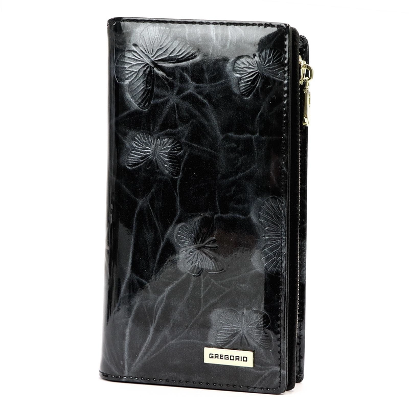 Portfel Damski Gregorio – Lakierowana Skóra z Motylowym Wzorem