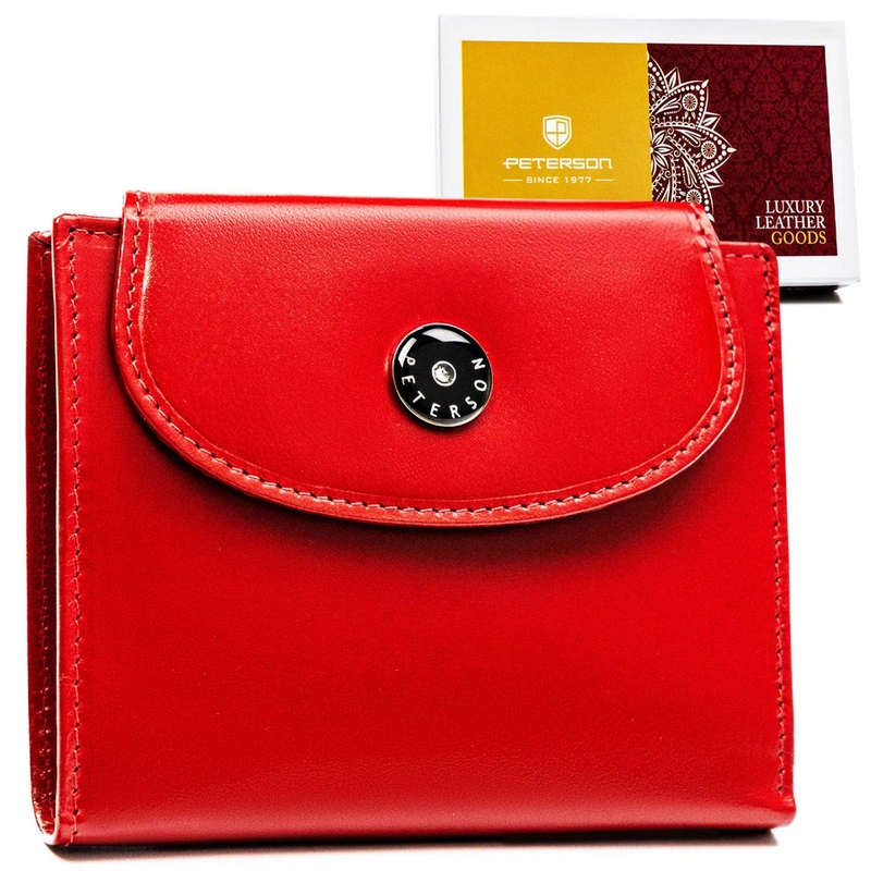 • Elegancki czerwony portfel damski Peterson wykonany z naturalnej skóry. Posiada ochronę RFID, liczne przegródki na karty, banknoty i monety. Idealny wybór na każdą okazję. Styl i funkcjonalność w jednym!