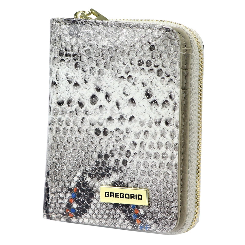 Stylowy portfel marki Gregorio to propozycja dla kobiet, które cenią wyrafinowany design i doskonałą jakość wykonania. Wykonany z naturalnej skóry o efektownej fakturze przypominającej skórę węża, przyciąga uwagę luksusowymi złotymi okuciami i subtelnym logo producenta.