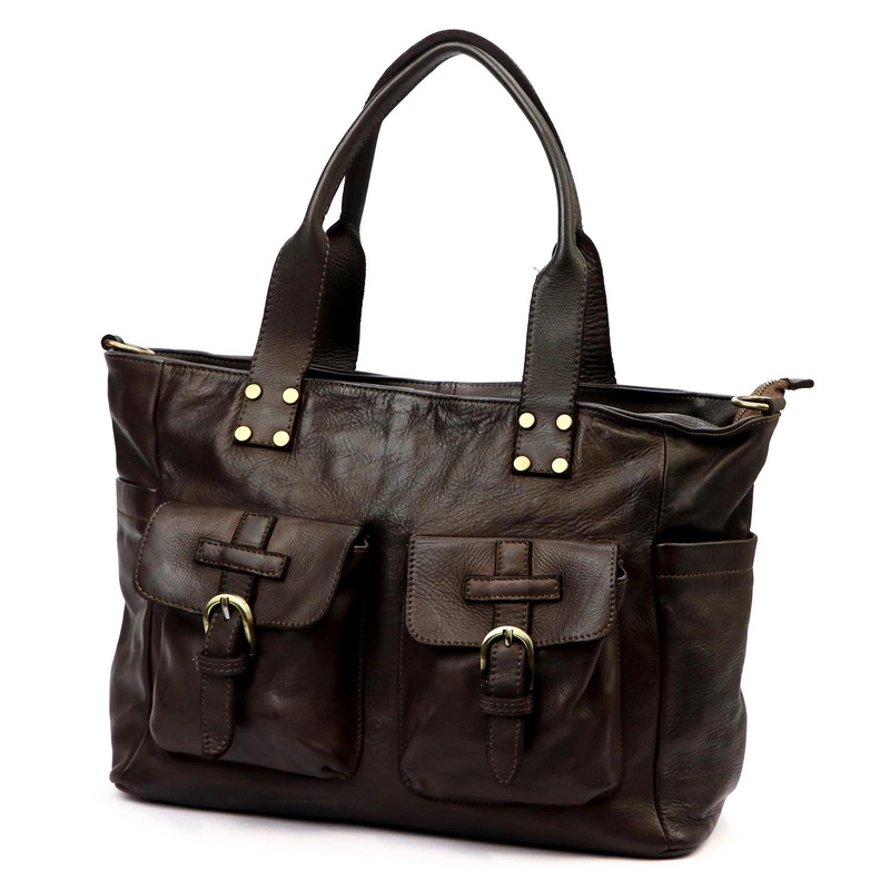 Damska duża skórzana shopperbag torebka na ramię shopper z kieszeniami VS