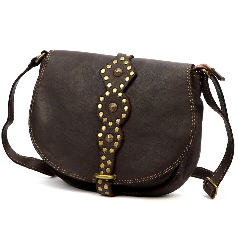 Elegancka damska listonoszka skórzana ze złotymi dżetami torebka na ramię