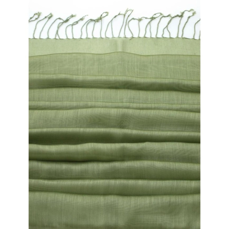 Lekko połyskujący, zwiewny szal wykończony frędzlami.