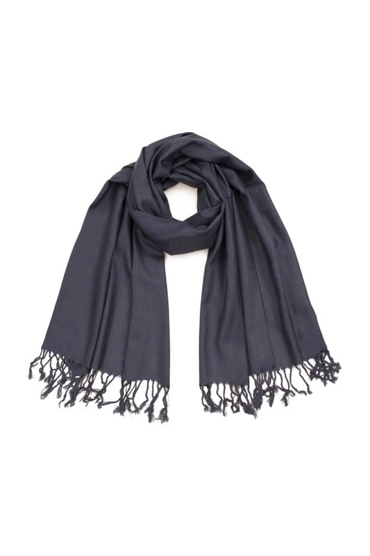 Wykończony frędzlami. Materiał miękki i przyjemny w dotyku.