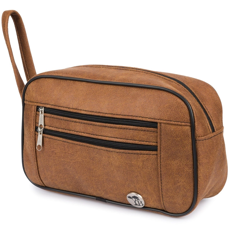 Kosmetyczna podróżna saszetka elegancka uniseks koniakowa konianubuk Beltimore R25